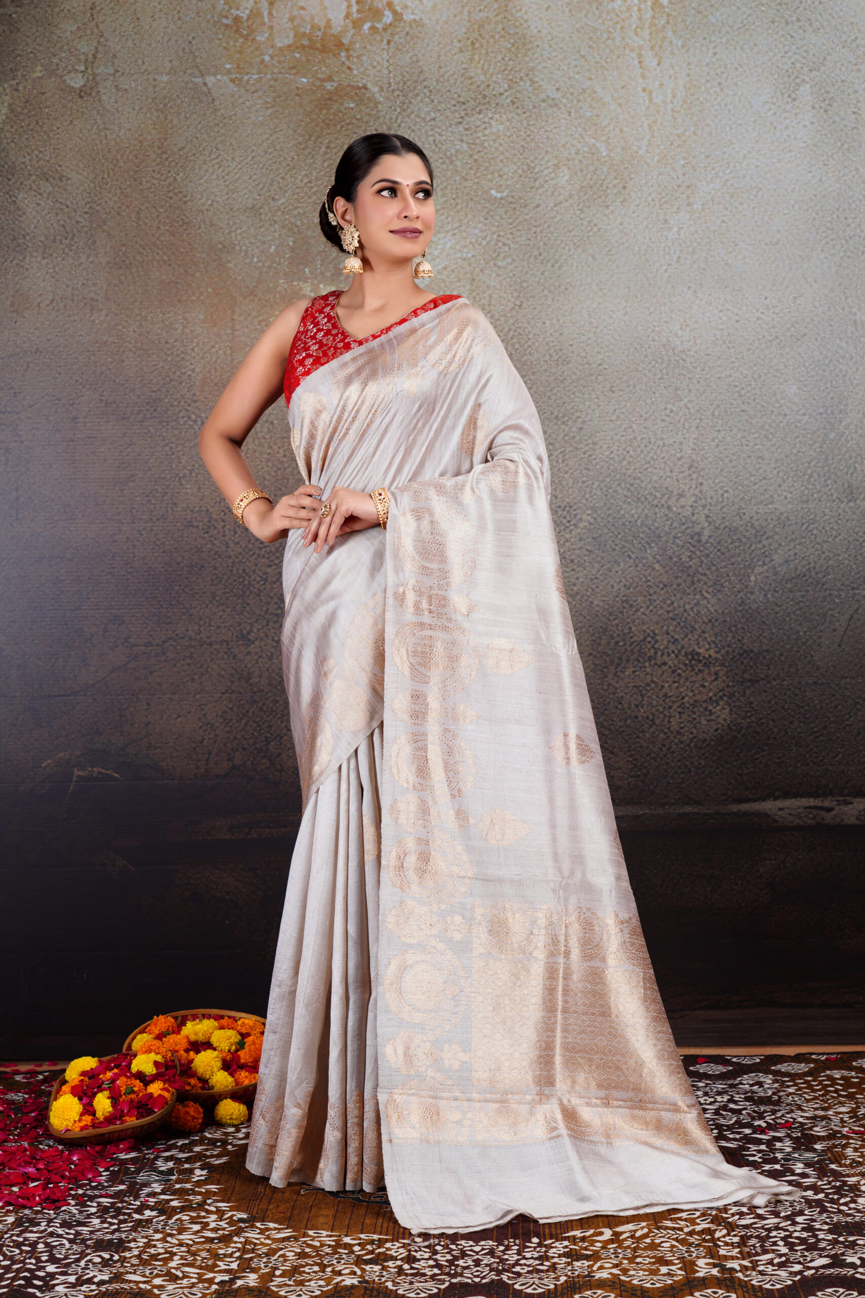 Perfect for intimate celebrations, cultural gatherings, or refined festive occasions, this saree blends simplicity with sophistication. Lightweight, timeless, and richly detailed, it’s a piece that speaks softly yet leaves a lasting impression.
